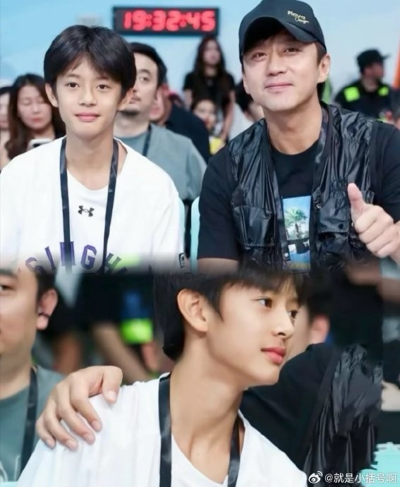 邓超携儿子看篮球赛,父子同框互动有爱,13岁等等模样帅气像孙俪