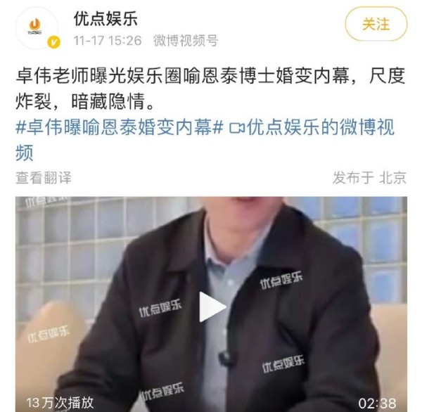 卓伟爆料的离婚男明星是喻恩泰,两个人育有一儿一女,夫妻没在北京买房,没有财产,为逼妻子离婚,喻恩泰停了生活费和抚养费……秀才真是真是本色出演 抠门又算计!