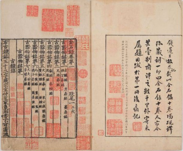 “即使不是首次亮相,因为与关联文献组合展出,提供了全新的视角。”本次展览策展人、上图副研究馆员梁颖以《金石录》“十卷本”为例,虽非孤本且经伪饰,然累经名家收藏,煊赫书林,不减其独一无二的身价。“十卷本”上有众多名流题跋、题咏,收藏印记竟达三百枚之多。