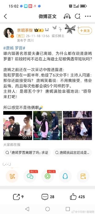 今年9月就有博主爆料,罗晋竟然向唐嫣提出过六次分手,个人觉得应该是罗晋有点自卑,妻子太美事业又如中天,而他确少有新的作品问世,心里的落差感让他有了如此荒诞的念头,但在唐媽的开导下应该早就调节过来了媽,不然也不会拿在节目中说。唐嫣从和罗晋结婚后,从来没有出现过绯闻也没炒过CP,近年睡不好的传闻也是古二的录音世界中被人㖆㖆,相信那些所谓的离婚传闻应该是假的。