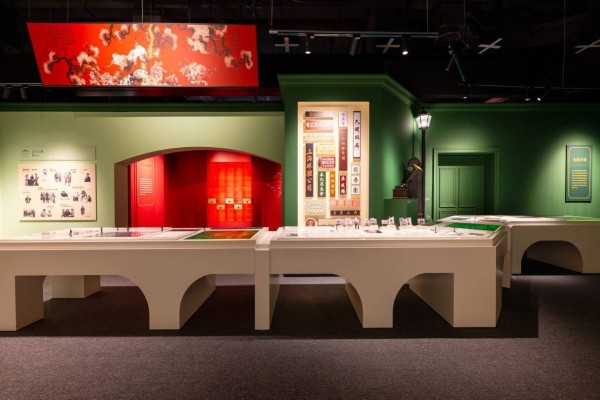 展区内“滑稽大王来白相”“黄家小姐荡马路”“去十六铺做生意”等极具沪语特色的小标题,散发出展览浓浓的上海气质,也让学术内容变得生动亲切。展览还近乎等比例复刻了1926年民新公司在沪开业时,名流粤商赠送的喜幛,这块长约四米的喜幛绣品将“玉堂富贵”和“松鹤延年”吉祥图融为一体,寓祝愿事业恒久繁荣之意,作为早期上海影业发展的证物弥足珍贵。