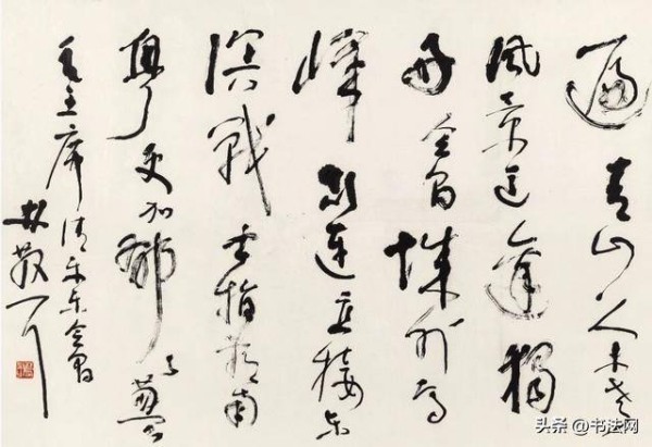 他的作品,远看是一片氤氲的气象,近观则笔笔清晰、骨力洞达,具有了类似抽象绘画的视觉张力和现代感,却又牢牢植根于汉字结构与笔法传统之中。1970年代,他的草书长卷在日本展出,引起巨大轰动,日本书道巨擘青山杉雨当场敬题“草圣遗法在此翁”,其客观性与权威性毋庸置疑。