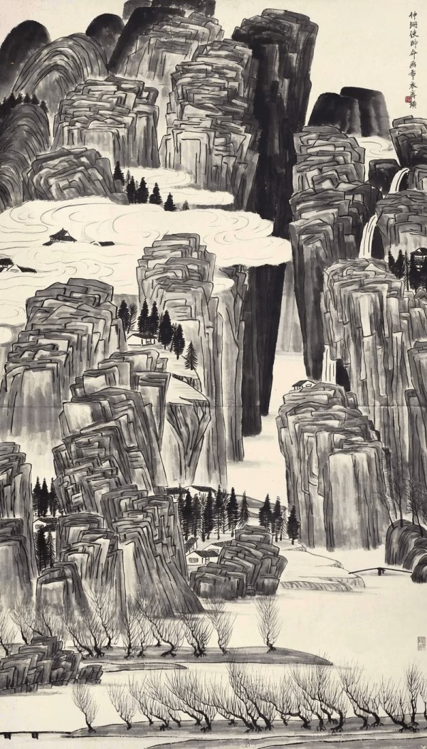 在“大观·近现代”专场中,包括傅抱石、齐白石、张大千、徐悲鸿等名家精品齐聚,成交率高达85%。傅抱石寓居重庆金刚坡时的巅峰之作《巴山夜雨》 以2875万元领衔全场。这幅创作于1943年的作品将李商隐诗句中的羁旅愁思与家国命运熔于一炉,代表了画家独特的艺术语言和“抱石皴”技法的成熟。