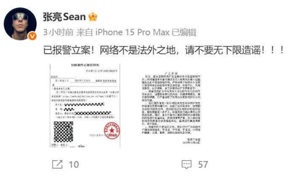 张亮回应儿子闹事传闻 表明已报警立案张亮儿子被曝与女生恋爱并致对方怀孕,张亮:请不要无下限造谣!朝阳警方已立案