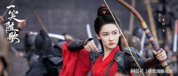 取材自网络作家炽翼千羽小说《一笑》的古装权谋爱情剧《一笑随歌》当中的锦绣国第一神射手「付一笑」由「女神」李沁饰演,她总是一身红衣,潇洒妩媚的模样,像是箭羽划过风的俐落感,又保留柔和暖心的温度。 「付一笑」后在平陵之战中,以一箭射中夙砂国大皇子「凤随歌」(陈哲远 饰),2人从战局仇敌到结为盟友,历经生死难关后,彼此心意逐渐明朗,被誉为「双强 CP」。
