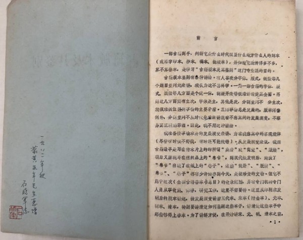 据辛德勇兄回忆说,历史地理专业三位同学上黄先生的课,是出于导师史念海先生之命。我去上黄先生的课,也是因为得到了导师胡锡年先生的支持和鼓励。因为胡先生希望我将硕士论文的主攻方向放在唐宋时期的中日关系方面。记得当时我先后选修了黄先生给唐史专业开设的“唐史史料学”“古籍版本及其鉴别”“古籍整理概论”等课程。由于每次都与唐史专业同学一起上黄先生的课,以至于同宿舍的黄新亚兄和齐永锋兄常戏称我为“唐史编外”。黄先生作为唐史专业导师,也不时会来我们“三驽堂”巡视指导,对我这个从本科就在师大历史系读书的“唐史编外”生也颇为关爱,亲自带来了上述各门课程的油印教材赐赠给我,令人感动不已。黄先生当时赠送给我的教材,我一直随身携带,珍藏至今。一看到这些四十多年前已经发黄的油印教材,眼前就立刻会浮现出黄先生授课时的音容笑貌。
