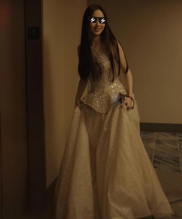 晒出的照片里,Zoe披着长发,化着精致的红唇美妆,身穿亮晶晶的抹胸礼服裙,举手投足都是满满的魅力,养眼极了。面对妈妈的镜头,Zoe笑得那叫一个甜美,笑起来也和妈妈好像啊。并且就这么看,Zoe的脸型也完全随了妈妈,身材同样如此,和妈妈一样纤瘦苗条。唯一像爸爸高晓松的,应该就是身高了。Zoe的个头十分出挑,穿上这身礼服裙,衬得她愈发纤瘦苗条,身高也格外吸睛。