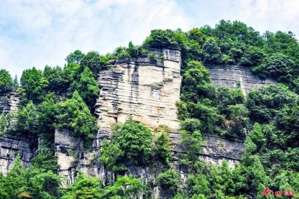 久闻“福”字崖,心早向往之,一直想亲身前往一探。前两年,在庆元镇工作,正值大金佛山178环山趣驾福庆线建成开放,终于有机会前往观摩。百闻不如一见,当身临其境,仰视福字,极为震撼。