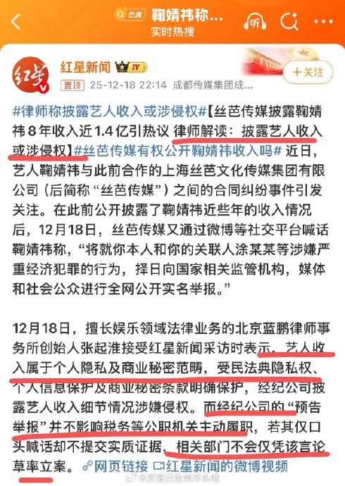 丝芭传媒公开鞠婧祎十年收入引隐私争议