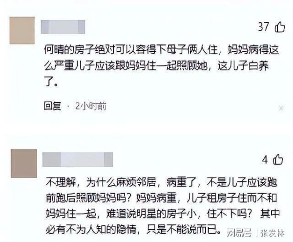 在这场舆论的风暴中,许何的坚持让人感动,他不仅是何晴的儿子,更是家庭的支柱。