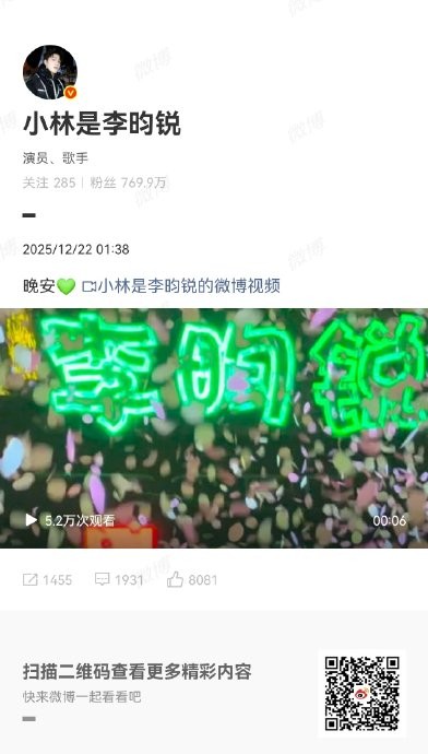 #李昀锐发了小森林的灯牌#李昀锐跟粉丝说晚安,还发了小森林的灯牌,双向奔赴的浪漫真的太棒了!!!#2025娱乐年终盘点##非正式跨年派对#