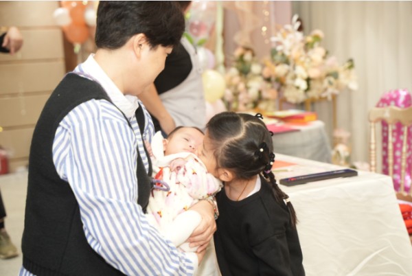 宴会上特别为长女“小黄妃”举行胎毛笔开笔仪式,并为小女儿“小贵妃”制作胎毛笔及姊妹手足情深印,寓意姐妹情深、传承家训。这场别具意义的仪式让在场宾客共同见证了这个家庭的幸福时刻。