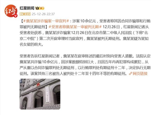12月26日,北京市第二中级人民法院的一纸判决,为一场涉及巨额资金的诈骗案画上了阶段性句号。詹浩礼(即詹某某)因合同诈骗罪、行贿罪被判处无期徒刑,剥夺政治权利终身,其涉案金额被法院认定高达10余亿元(据此前报道,具体数额在12亿至13.9亿元之间)。这位曾以“富豪”形象示人、更因是知名女星王丽坤前夫而备受关注的案犯,最终在庭审最后时刻向受害者道歉,但为时已晚。
