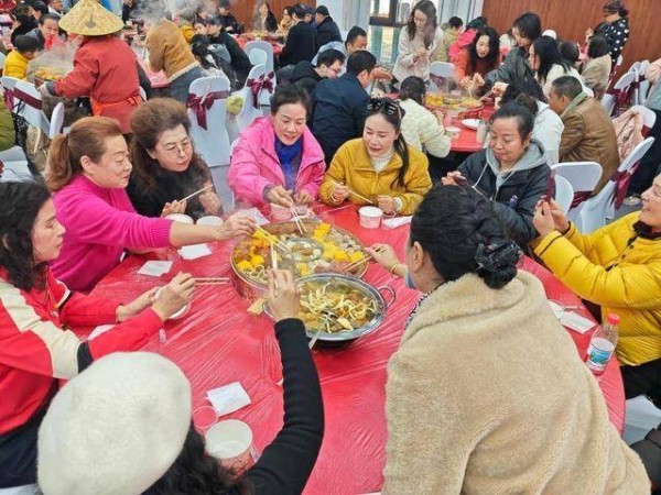 走进宴会厅,刚出锅的蒸笼格子热气腾腾,黄陂三鲜、排骨、粉蒸肉……18道独具黄陂地方特色的美味佳肴被端上了餐桌,香气四溢。游客们举筷品尝,在聊天拉家常间,感受浓浓的年味儿与乡土风情。