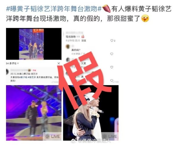 #曝黄子韬徐艺洋跨年舞台激吻#看完彩排路透视频根本就没有“激吻”什么的
