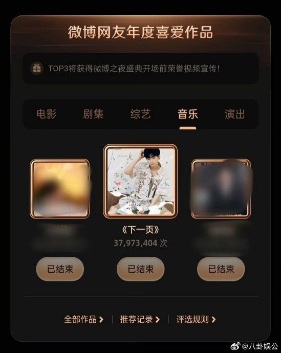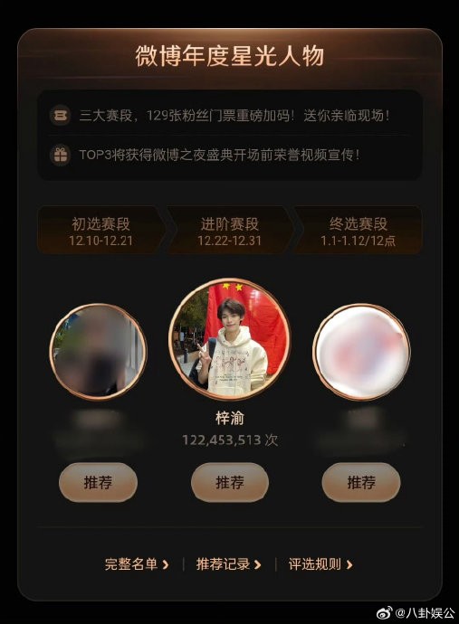 梓渝年度推荐3次第一 稳居榜首
