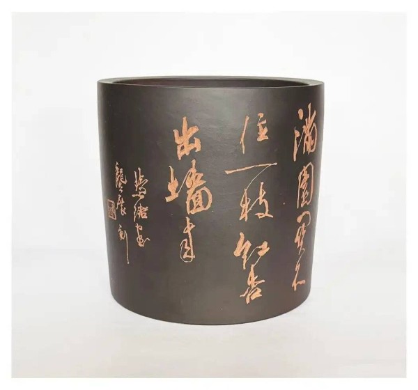 与龚展已有三十多年交情,同为刻壶高手的九旬著名书法家,金石篆刻家高式雄对龚展的刻壶也赞赏有加,他们联手共同创作的精品,极受业内人士追捧。