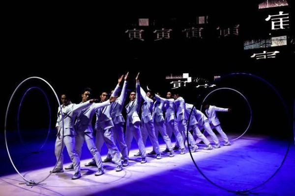 ↓1月12日,在匈牙利首都布达佩斯,中国杂技团演员在表演《时光》。