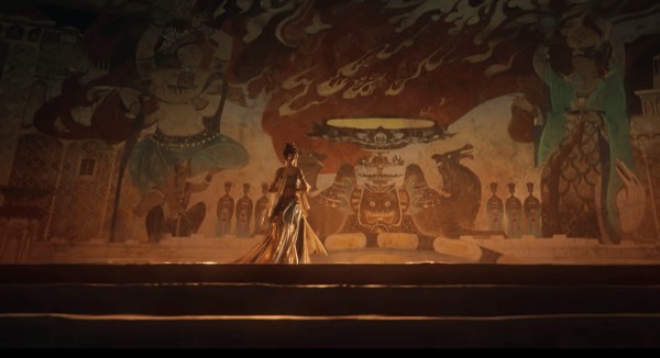 CG中,我们可以看到:作为以敦煌文化为原型的游戏流派,研发团队在鸿音的角色设计、动作编排等环节,深度借鉴了敦煌壁画中的艺术元素;在游戏精细建模的呈现下,鸿音美得不像话,还有知名舞者唐诗逸做动捕的技能特效等,让玩家看得合不拢嘴。