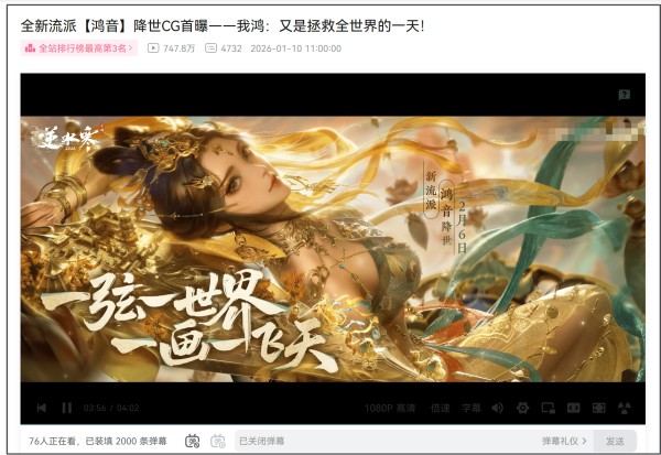 据公开数据显示,CG上线24小时内,仅B站平台播放量便突破700万,抖音、微博等社交平台相关话题持续发酵,总播放量超千万,形成了广泛的传播效应。