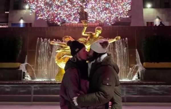 在纽约的洛克菲勒中心溜冰场,他们一起牵手滑冰、甚至情到浓处的时候还相互抱在一起亲吻。