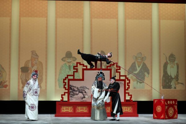 1月16日晚的《活捉》,由38岁的文丑演员朱何吉主演。作为一出京昆两下锅的剧目,这出戏对演员的身体控制能力要求极高。朱何吉在20多分钟内,密集展示“甩发”“变脸”、桌上“抢背”以及硬挺挺倒下的“僵尸”等高难度技巧。