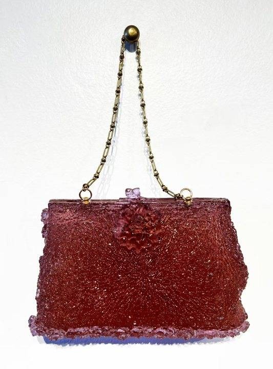 《瑰红暖语》这件作品是在怀念艺术家的祖母,这件作品直接致敬家族史,手袋承载的不只是对象,更是横跨世代的血缘与记忆。