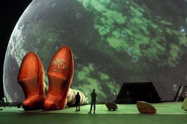 在Sphere剧院观看AI增强版《绿野仙踪》的人,看到的是与1939年原版截然不同的画面。图片来源:美国《纽约时报》网站