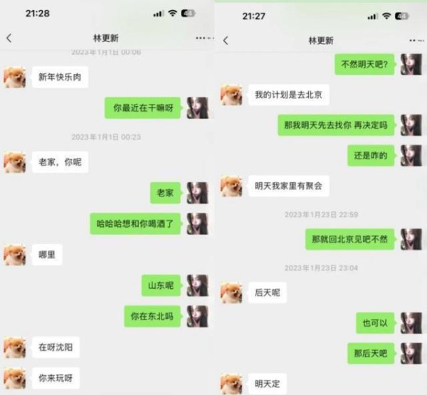 网友连夜做表,发现她贴出的“2023年密聊”横跨三十天,内容如下:早、吃了吗、晚安、哈哈。林更新唯一一次主动约饭,还是因为新剧杀青请全组,司晓迪没回,饭局自然黄。事后她补一张自拍,说“错过”。林更新回了六个点。句号比字多,堪称内娱最省电男。