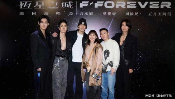 近日,F4成员周渝民、吴建豪、言承旭和五月天成员阿信在成都举行巡回演唱会,吸引了很多人前来观看。值得注意的是,吴建豪的妈妈也来了。