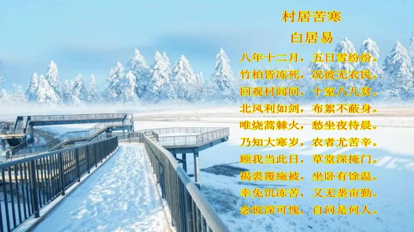 最懂换位思考的诗人大概就是白居易了,大寒又逢大雪,诗人自拥褐裘,过着安逸的生活,但他内心却念挂着严寒中的无衣百姓,诗中满含忧民之痛与自愧之心。语言平实,情感真挚,让人动容。