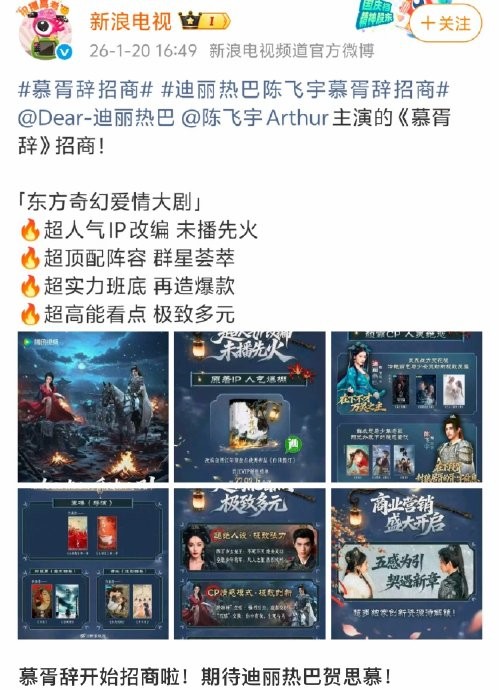 慕胥辞班底曝光,迪丽热巴新剧妆造获赞