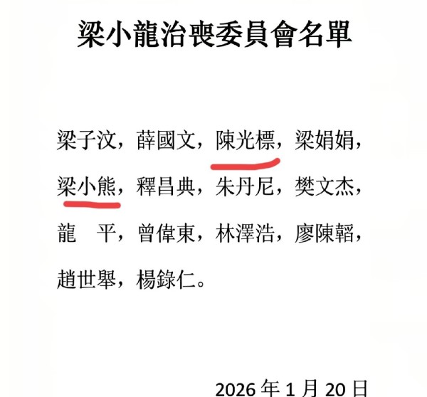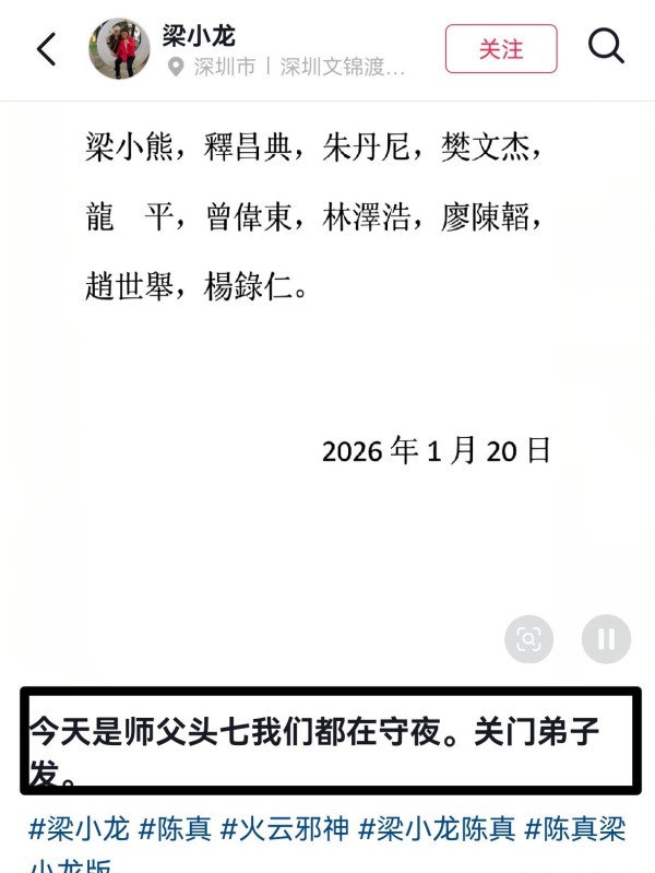 很多圈里人都发悼念,成龙周星驰都提了。结果到20号头七这天,梁小龙徒弟说大家在守夜,并公布了一张14人的治丧名单。名单里居然没有他的子女,倒是出现两个让人意外的名字:一个是慈善家陈光标,另一个是弟弟梁小熊。