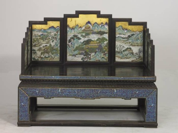 清 紫檀木嵌珐琅宝座