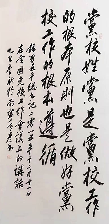 其书,融碑帖之长,刚柔并济,是心迹的流淌,亦是古意的回响;其刻,叩金石之声,与泥土对话,是匠心的独白,亦是大地的诗行。从长江的青雅婉转,到岭南的雄浑厚朴,方彦以学者之思,潜心治学,以艺者之心,默默耕耘。身为党校年鉴专职副主编与自治区年鉴专家,他在字里行间打捞历史的沉光;作为社区书法导师,他在童蒙心中种下墨香的种子。