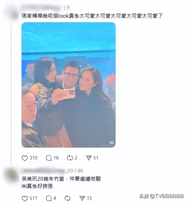 事缘最近歌神张学友举行红馆演唱会,有歌迷在偶遇吴美珩与友人低调现身捧场,大为兴奋!后来在散场时又见到影帝张家辉,当他与吴美珩故友重逢时,双方都表现出十分惊喜的表情,随即兴奋上前热情拥抱对方,之后两人还头贴头合照留影。
