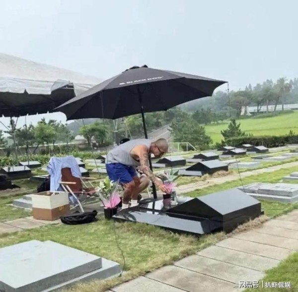 天热的时候,具俊晔就在大S墓前撑起遮阳伞,他坐在那里玩手机打发时间。