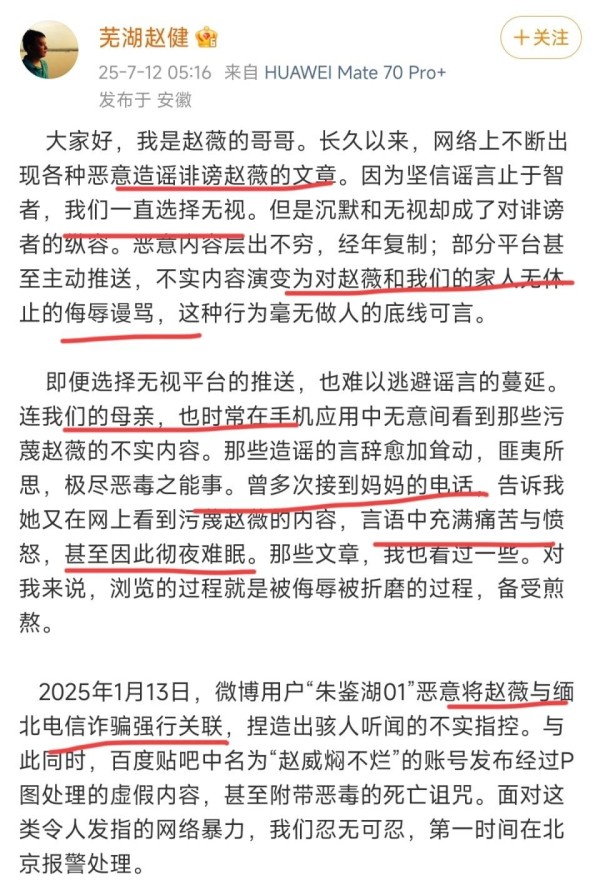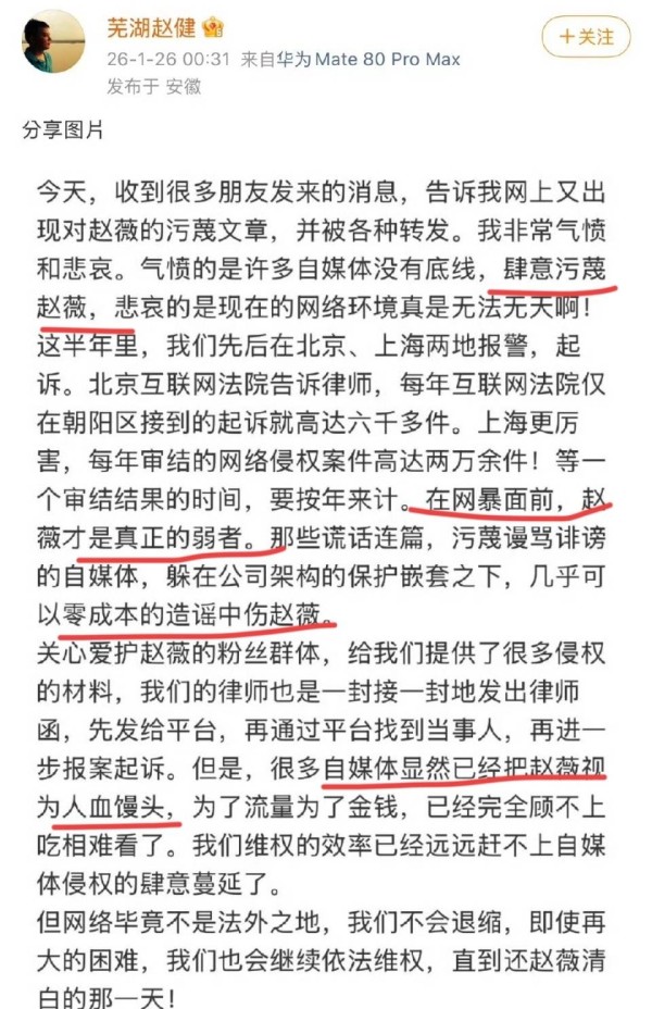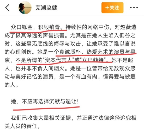赵薇哥哥赵健替妹妹硬刚造谣者:在网暴面前,我妹妹赵薇才是弱者