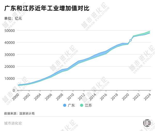 从去年的数据来看,江苏规上工业增加值增速达到6.5%,高于广东的3%;外贸进出口增速为6.0%,也高于广东的4.4%。