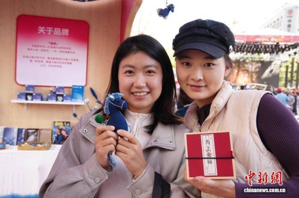 图为游客展示在活动现场购买的白族扎染手工艺品。中新社记者 刘冉阳 摄