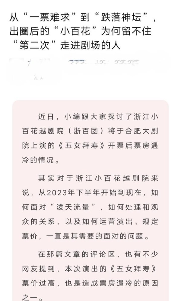 近期,有很多网友感叹越剧《苏东坡》遭遇滑铁卢,《五女拜寿》票房不佳,《我的大观园》国庆未售罄……