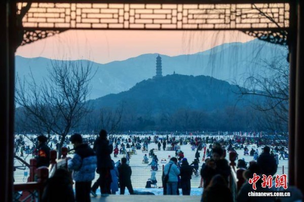 2026年1月24日,北京天气晴好,颐和园昆明湖冰场游人如织,民众尽享冬日冰上乐趣。 中新社记者 易海菲 摄