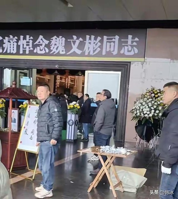 灵堂之内,黑白主调勾勒出沉重的氛围,黑底白字的“沉痛悼念魏文彬同志”横幅高悬,四周摆满黄白菊花,一束爱心形状的花束用花瓣拼出“念”字,成为现场最戳人的细节,大屏幕循环播放着魏文彬温和坚定的遗像,两侧挽联“改革拓荒,铸就广电湘军传奇;守正创新,泽被湖湘文化沃土”,寥寥数语道尽他一生的功绩。天未亮时,殡仪馆外便已有送别的人潮,广电系统工作人员、长沙市民自发前来,上百人身着黑衣、胸别白花,手持白菊排成长龙,从灵堂门口延伸至大院,步履沉重却秩序井然。