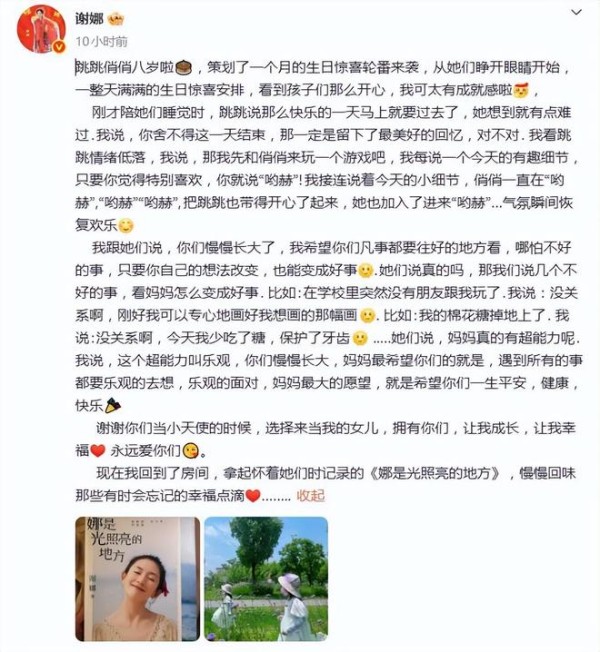 谢娜微博发文为小女儿小咘芽庆生