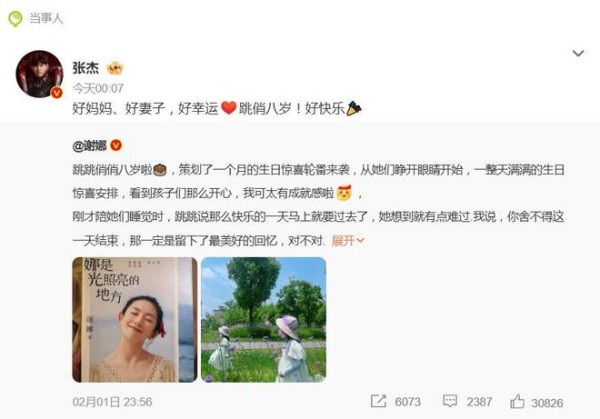 张杰一句“好妈妈、好妻子,好幸运”,直接让这对明星夫妻的相处模式再度成为焦点。2月2日,张杰转发妻子谢娜为双胞胎女儿庆生的长文,并附上深情告白,这番公开且具体的肯定,瞬间点燃了网络。