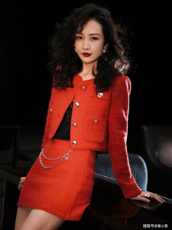 短裙与小开衫是套装,最吸人眼球的是半裙加入了链条设计,让优雅的氛围中多了些许接头感。裙子短的话,难免会影响一些行为,不想当淑女都难啊。这身红色穿搭挺适合春天,光腿神器该用则用。