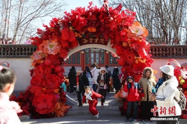 2月7日,北京,2026年圆明园新春游园会开幕。游园会融合了手作体验、国画展览、非遗市集等多元活动,为市民和游客打造沉浸式新春文化盛宴。图为游客游览海棠书院。中新社记者 王紫儒 摄