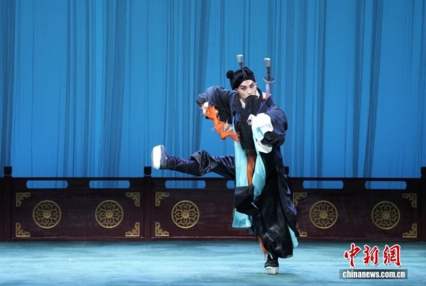 图为2月7日,刘恒演出《施公案·洗浮山》。图/CNSphoto 史春阳 摄