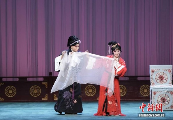 图为2月7日,刘恒(左)魏春荣演出《救风尘·趱路讨书》。图/CNSphoto 史春阳 摄