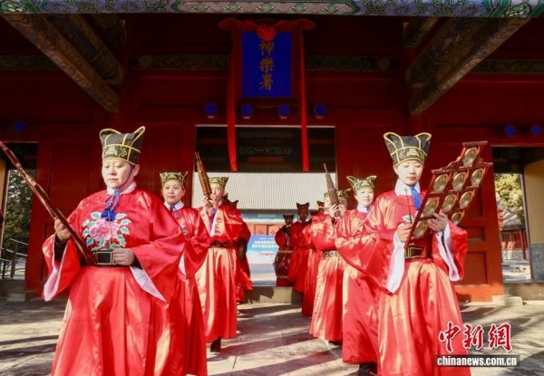 2月9日,天坛公园神乐署开放暨中和韶乐展览开幕式在北京举行。据悉,历经修缮和展陈提升,北京天坛神乐署院落将于10日对公众重新开放。天坛公园在神乐署布设“天坛神乐署中和韶乐展”,以1500平方米展览空间展示礼乐文化。中和韶乐是明清两朝用于祭祀天地、祖先等重大国事活动的专用礼仪性音乐,贯穿整个典仪过程,融礼、乐、歌、舞为一体,是中国雅乐传统的重要组成部分。天坛神乐署始建于明永乐十八年(1420年),是明清两代演习祭祀礼乐的核心场所。作为天坛五组建筑群之一,神乐署承载着中华礼乐的千年文脉。图为中和韶乐演出。中新社记者 易海菲 摄